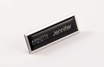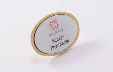 Sometimes only the best will do. For the ultimate in quality, style and appearance, our Executive Name Badges are the optimum solution. They are manufactured in a choice of Gold or Silver, with a metal back, and are both attractive & durable. Available in oval & rectangle, the front of the badge can be color matched to your brand specifications and can be personalized and titled for each staff member.